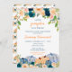 Blå persiko- och marinblåpumpsbabydusch inbjudningar