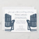 Blåblå Adirondack-strandstolar i en modern inbjudan till pension-partiet i stil.