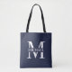 Personlig Monogram- och Namn-gåvor med personlig vit monogram i klassiskt serif font stil med box av namn i mitten på monogram på marin blå bakgrund.