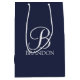 Personlig Monogram och Namn Giftfonts personlig monogram i det vita klassiska skriptet stil och namn i det vita klassiska serif-teckensnittet stil på marin blå bakgrund.
