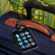 Blå planetens nebula galaxa vattenfärg bagagebricka