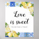 Blå platta citroner Kärlek är ett svalt favorittec Poster
