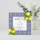 Blå plattor och citronplattor av typen Amalfi Positano Mediterranean stil födelsedagsfest inbjudan.