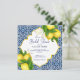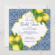 Blå plattor och citron Amalfi Positano Mediterranean stil inbjudningskort för möhippan mall Marocko stil Carved gräns.