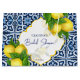 Blåplattor och citron från Amalfi Positano Mediterranean möhippa anpassningsbar presentsäck, Marocko stil Carved gräns.