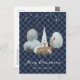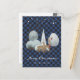 Blåblå julvykort med en vinter-plats med vattenfärg, en buck och en doe i en snöskog och skuggande stjärnor ovanför dem på en blå buffelplatta bakgrund. Anpassa enkelt det här urvattnade blåa julvykortet med din familj namn, returadress och budskap.