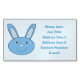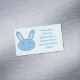 Denna fantastiska magnetiska visitkortuppsättning har en digital konstbild av ett blått kaninansikte med bleka blå ögon och näsa och stora öron. Den har en vacker stor leende. En bra design för att fira vår eller påsk. Det finns anpassad text så att du kan inkludera alla relevanta affärsuppgifter. Perfekt för barnvakter, födelsedagsarrangörer och andra barnomsorgsarbetare.