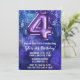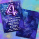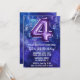 Blå lila födelsedagsinbjudan för pojkar 4-års födelsedagsfest inbjudan för en pojke blå lila med modern scriptskrift och roliga foliebollar.
