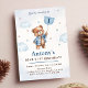 Blå Pojke Teddybjörn Ballonger Första Födelsedagen Inbjudningar