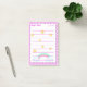 Tittar för ett sött och kreativ sätt att göra dina anteckningar mer glada och roligtar? Om så är fallet måste du checka ut det nya med ett vitt ram som har en skalad kant och skuggeffekt. Inuti ram ger gult söta stjärnor och moln med regnbågar en känsla av lätthet och lugn i dina anteckningar. Och det finns mer! Linjerna att skriva dina anteckningar är rosa, samt det utrymme du behöver för att ange datum och namn, som kan anpassas. Med en rosa bakgrund med vitt polka dots är perfekten för att slå ihop påminnelser, att göra-listor, mobila nummer eller till och med ett romantiskt budskap för den speciella personen. Så varför behålla med tråkiga och tydliga anteckningar när man kan ha en så vacker och charmerande post-it? Välj din nu och gör dina anteckningar mer färgstarka och roligt!