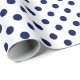 En papprare omslutning byggt med en marin blå polka punkt mönster med ett medium avstånd mellan punkterna på en vit bakgrund. Anpassa bland annat den vita bakgrunden.