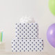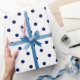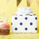 En papprare omslutning byggt med en marin blå polka-punkt mönster med stor avstånd mellan punkterna på en vit bakgrund. Anpassa den vita bakgrunden på ett enkelt sätt.