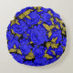 Blå ponnyer med Guld Löv Rund Kudde