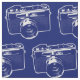Blå filmkamerans design ligger i färg i djupt blått och vitt med ett reflexutseende. Denna bild av en 35 mm kamera, som har sitt ursprung i ett fotografi av en kamera. Bilden är placerad så att alla kamerans kontroller är synliga på kamerans översida. Ladda in filmen i kameran, klicka på slutaren och du är redo! Om du eller någon du känner till fotografering och kameror i kärlek, är Blue Pop Art Camera-designen ett val i fantastisk!