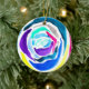Blå popkonst ro, vattenfärg julgransprydnad keramik