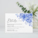 Blå Porslinsblomma Bröllopsdetaljer Bifogad Kort. Detta stilrena & eleganta bröllopsdetaljer bifogade kort har vackra handmålade akvarell Blå Porslinsblomma Chinoiserie. Hitta matchande föremål i Blå Porslinsblomma Bröllops Kollektion.