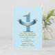 Inbjudningar till födelsedagsfest med blå prickar & banderoll ONE 1:a 1-års