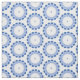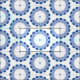 Upprepande cirklar med blå punkter och ljusblå cirklar i en upprepande av mönster. Ett varv med 54-tums bomullstygvilja