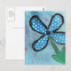 Blå prickig blomma i mixad media vykort