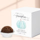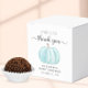 En söt pojke-duschmunbox med en pastellblå vattenfärg av en pumpa och "ett sött, litet tack" och "en söt liten pumpa är på väg" skriven i enkel grått typografi och ett snyggt skript med dekorationer. Anpassa enkelt mor namn och duschdatum för att samordna grått-typografi.