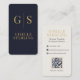 En modern och sofistikerad design med ett fet GS monogram, rikens marinbakgrund och elegantens guld accents. Layouten innehåller en QR-kod för omedelbar digital anslutning, parad med ren typografi för ett tidslöst utseende av professionell. Perfekt för konsulter, personmärken och entreprenörer som vill ha ett premiumintryck.
