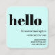 Anpassade turkos aquamarine blue affärskort, med HEJ typografi och namn, yrke, webbplats och uppgifter om social. På baksidan finns en skannerbar QR-kod. Om du vill skapa en ny QR-kod på designen som länkar till din egen webbplats klickar du på "Anpassa den här mallen" Lägg till din URL-medieferens adress eller social i det angivna området och en QR-kod skapas bara för dig.