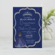 Den här eleganten blå och guld-inbjudan är en nyans av den blå Quinceañera-födelsedagsfesten. Du kan ändra inbjudan till vilken ålder som helst.