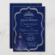 Den här eleganten blå och guld-inbjudan är en nyans av den blå Quinceañera-födelsedagsfesten. Du kan ändra inbjudan till vilken ålder som helst.