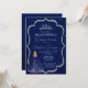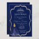 Den här eleganten blå och guld-inbjudan är en nyans av den blå Quinceañera-födelsedagsfesten. Du kan ändra inbjudan till vilken ålder som helst.