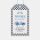 Blå racerbil pojke 1-årsdag presentetikett
