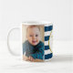 Anpassadets fotokollage-mall god jul mugg för bästa morfar någonsin med anpassade namn i marint blått och vitt rand mönster med guld-uppgifter. En underbarare gåva till en farfar.