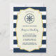 Den här chicen har nautiska födelsedagsfest inbjudan ett fet marint blått och vitt rand, ett faux guld foil gräns, söt kalligrafi och ett frakt hjul. Ändra texten till kostym varje år.