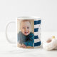 Anpassadets fotokollage-mall god jul mugg för bästa mormor någonsin med anpassade namn i marint blått och vitt rand mönster med silver-uppgifter. En underbarare gåva till mormor.