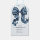 Blå randig båge Babykalas Tack Presentetikett
