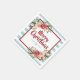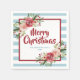 Elegant design på julservetter med akvarell vinterblommor och bakgrund med blå ränder.