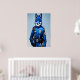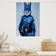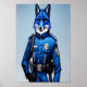 En porträtt av en söt och ädel blå räv i en polisuniform. Det här är en AI-skapad konst.