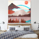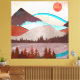 Bergslandskapets scen i och blues med sjö och en djärv blå regnbåge.