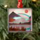 Bergslandskapets scen i och blues med sjö och en djärv blå regnbåge.