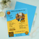 En resebyrå med din logotyp, QR-kod och foton. Du kan välja en egen bakgrund färg i den avancerade redigeraren. Den här flygaren kan även anpassas för alla mål.