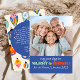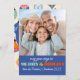 Retro julgransprydnader gör denna julhälsning färgglad och nostalgisk. Ett foto på framsidan och utrymme för ett personligt meddelande på baksidan.