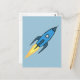 Blå Retro Raket Rymdskepp Yttre Rymden Enkel Moder Vykort