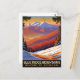 Blått visitkort. Snö i bergen. Visat vykort för resor i vibrant färg.