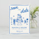 Blå ritad tillsammans Bröllop med foto Spara Datumet