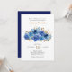 Blått Ro och Guld Löv Quinceanera-inbjudan. Utformning av blommigt med vattenfärg blommor från ro blommor och löv i blå och guld nyans. Modern chic för ditt 15-årsjubileum. Bläddra i Blå Ro och Guld Löv Collection för matchande produkter eller meddela mig om du vill skapa de mallar du behöver.