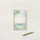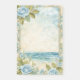Blue ro och Small blåa blommor omger ett ram runt ett landskap på en strandscen. Snygg, vintage estetisk.