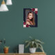 Elegant blå blomsterfoto firande av liv/begravning välkomstskylt med burgunderröda och rosa rosor och babysand blommor som dekorerar ett foto inuti en guldram. Matchande föremål finns tillgängliga.