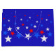 Fem stjärnor mönster i blått, rött och vitt färg på blå bakgrund. Abstraktens utrymmesdesign.