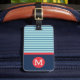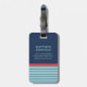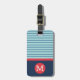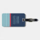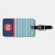 Blå Röd Rand Monogram Namn Adress Resväskemärke Bagagebricka