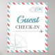 Röd och blå "Gäst Check-In" skylt som kan användas för en resa/flygplan tema baby shower, sprinkle, födelsedag eller ett annat tillfälle. Denna design kommer att se bäst ut i 8" x 10" eller 16" x 20". Om du letar efter en annan storlek, vänligen kontakta oss för att få den anpassad.