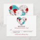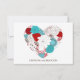 Tiffanyblå och Röd Whimsical Blommig Hjärtformad Bröllopssvarskort